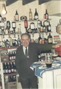 The picture shows Cyril behind the bar, which at the time was where the ‘cellar’ room now is. Beer was dispensed straight from the cask in the bar.