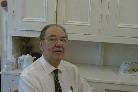 Behind Cyril can be seen the wooden cash till that was in use at that time.