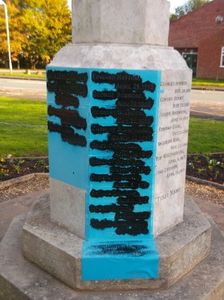 On the 22nd May 2005 at 3.30pm a vehicle (car) collided with one of the corner posts, the post had to be reinstated as soon as possible to ensure a level of protection around the memorial. The post was strong enough to deflect the vehicle away from the Memorial.
